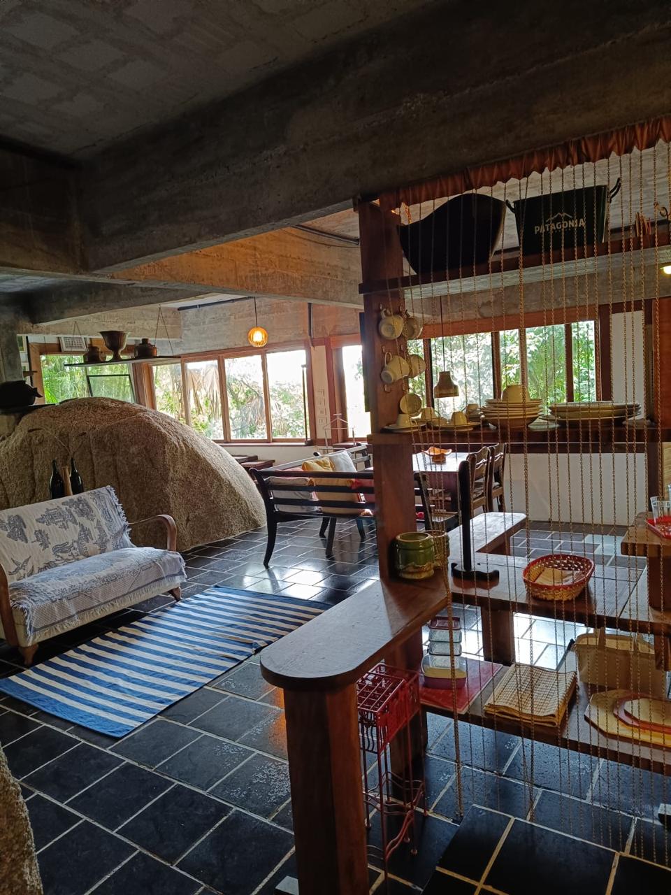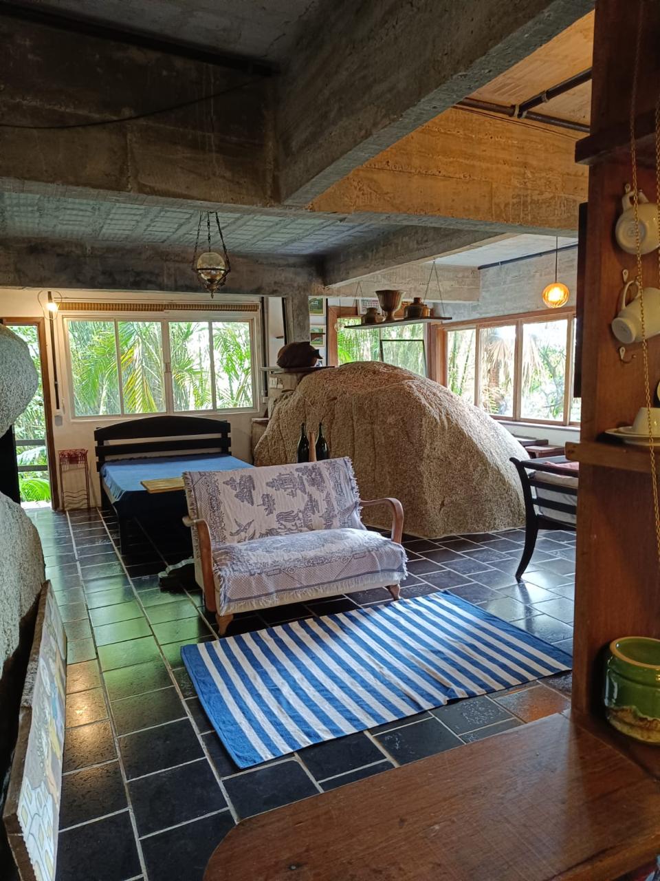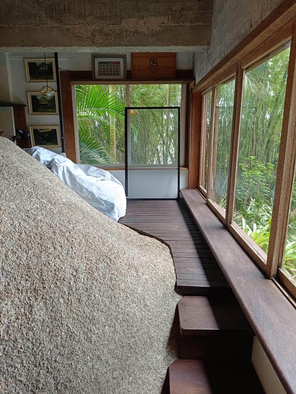 O espaçõ é totalmente integrado sem paredes nem divisórias, sendo que os aposentos tem uma certa intimidade.