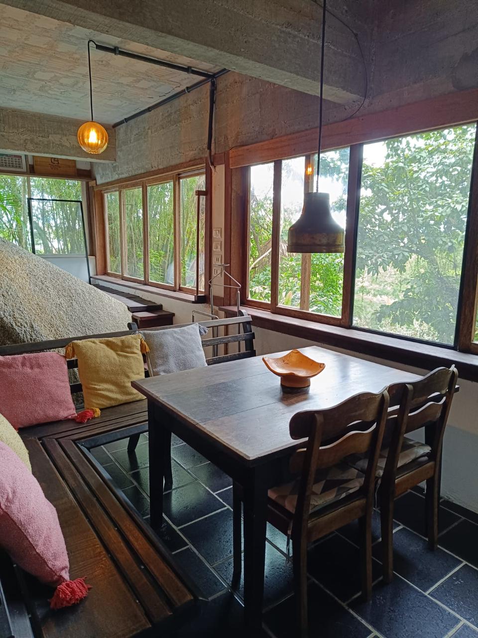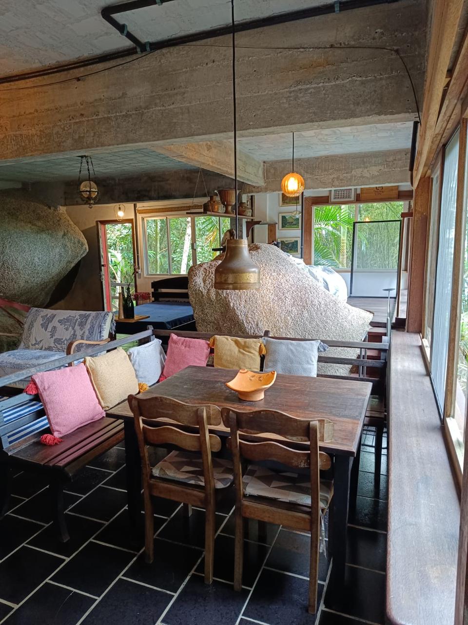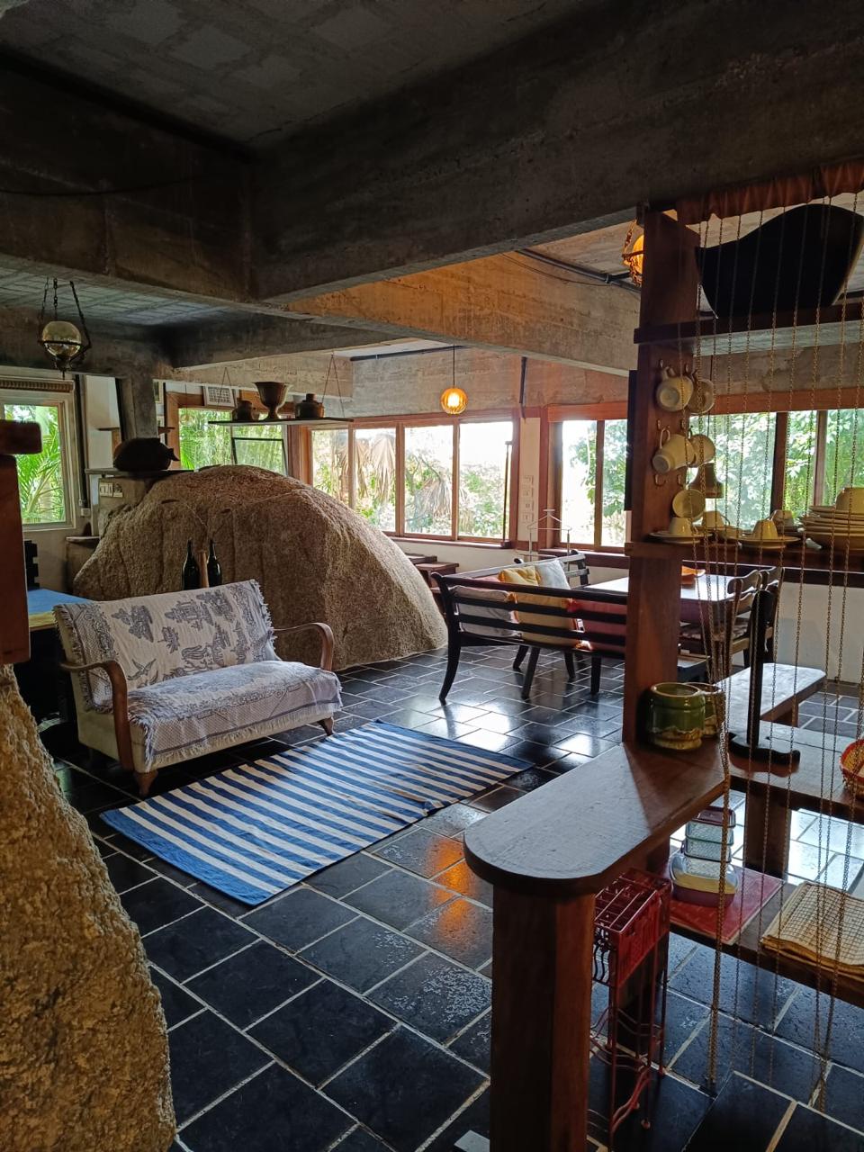 O espaçõ é totalmente integrado sem paredes nem divisórias, sendo que os aposentos tem uma certa intimidade.