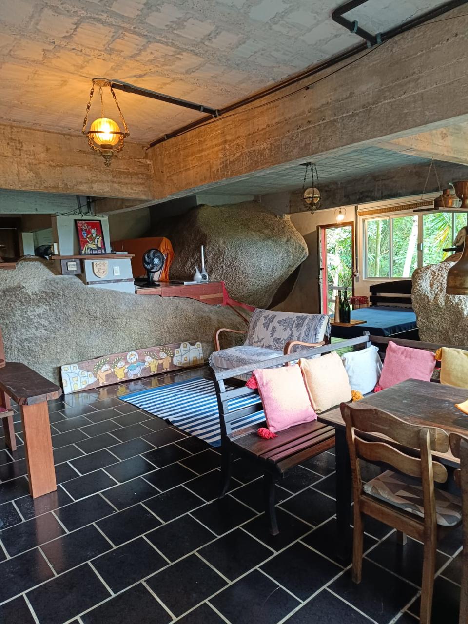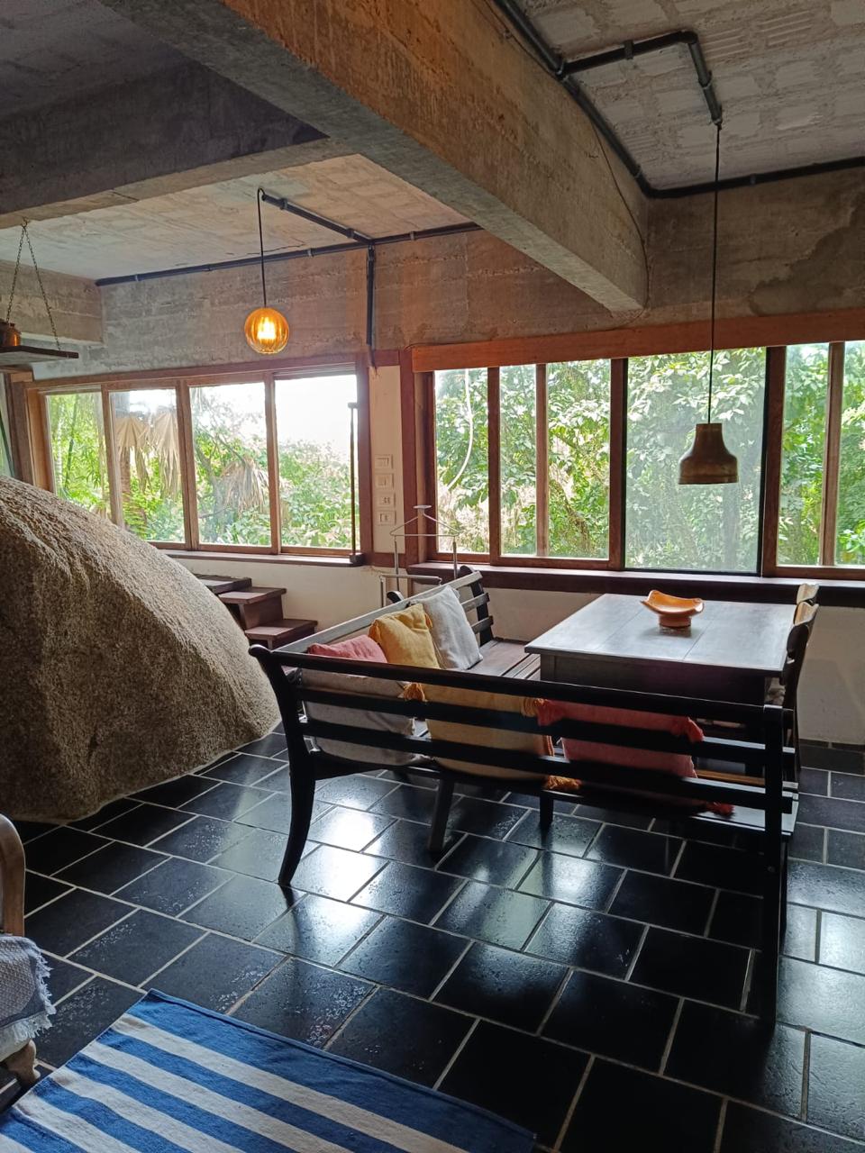 O espaçõ é totalmente integrado sem paredes nem divisórias, sendo que os aposentos tem uma certa intimidade.